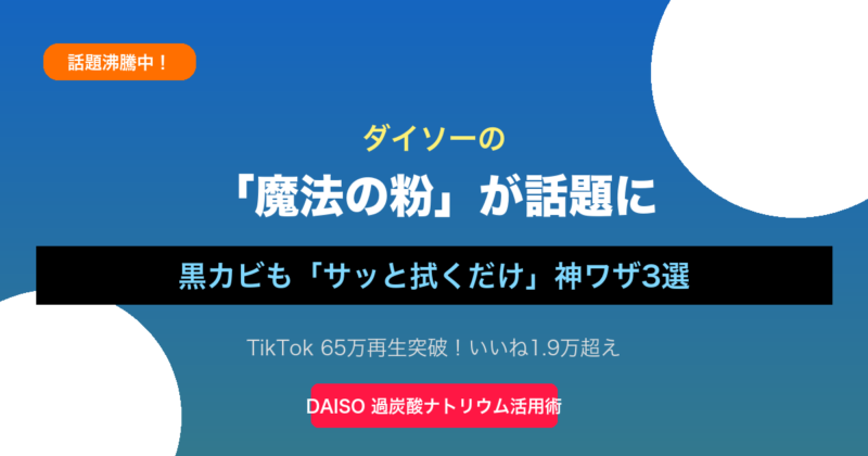 「掃除が大変すぎる…」そんな悩みを抱える方に朗報です。ダイソーで販売されている「過炭酸ナトリウム(粉末タイプ)」が、SNSで"魔法の粉"と呼ばれ爆発的な話題を集めています。 TikTokに投稿された活用動画は65万再生超・いいね1.9万件を突破。「こんな... 雑記