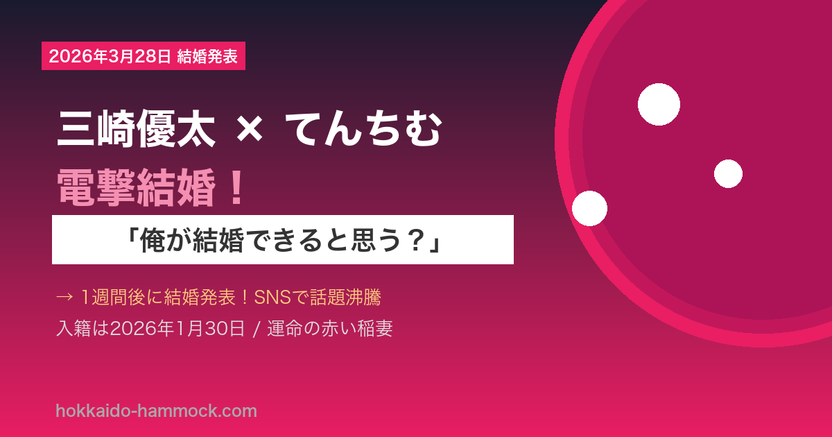 この投稿が話題となったのは、実は三崎氏が2026年1月30日にすでに入籍済みだったから。つまり「俺が結婚できると思う?」と言っていた時点では、すでに既婚者だったわけです。