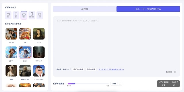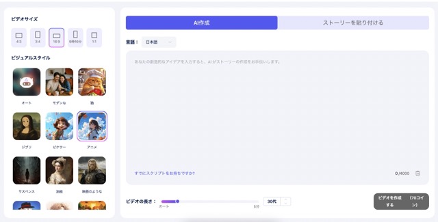 ストーリーに箇条書きを書くだけでAIがストーリーを考えて動画にしてくれます。