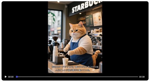 この猫動画はよくSNSのショート動画で見ますね。このような動画も簡単に作れました。