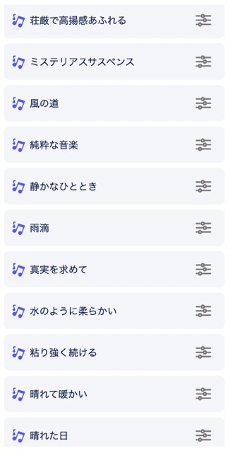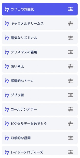 こちらも一部ですがBGMの種類をご紹介します。