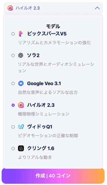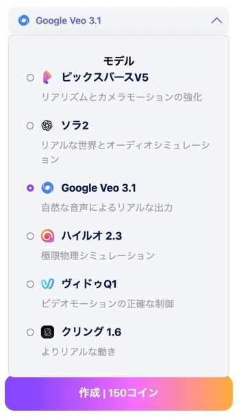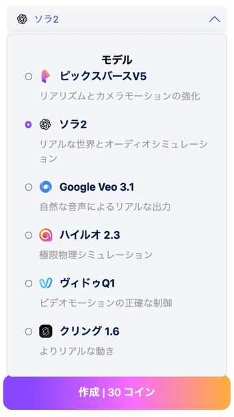画像→動画やテキスト→動画も対応SORA2風、Veo、ピクサースタイルなど多彩