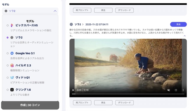 この動画はSORA2を使い30コインでした。