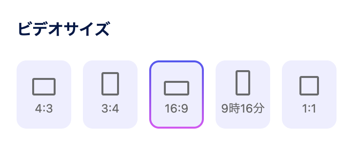 いろんなSNSに対応できるように様々なサイズの動画を作成できることが出来るようになっています。