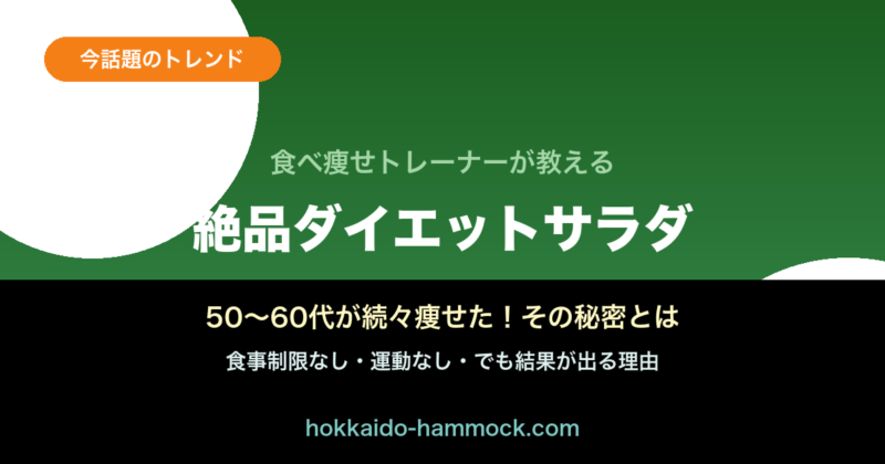 「ダイエットしたいけれど、食べることが好きだからやめられない」——そんな悩みを抱える50〜60代の女性の間で、いま「食べ痩せサラダ」が爆発的に話題になっています。カロリー制限なし、運動なし、それでも続々と体重が落ちていくという驚きの声がSNSに溢... -